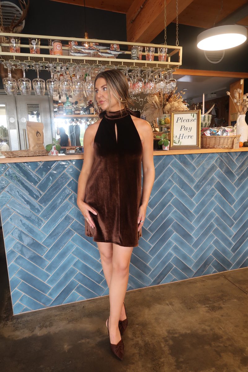 Bella Bow Dress Brown
